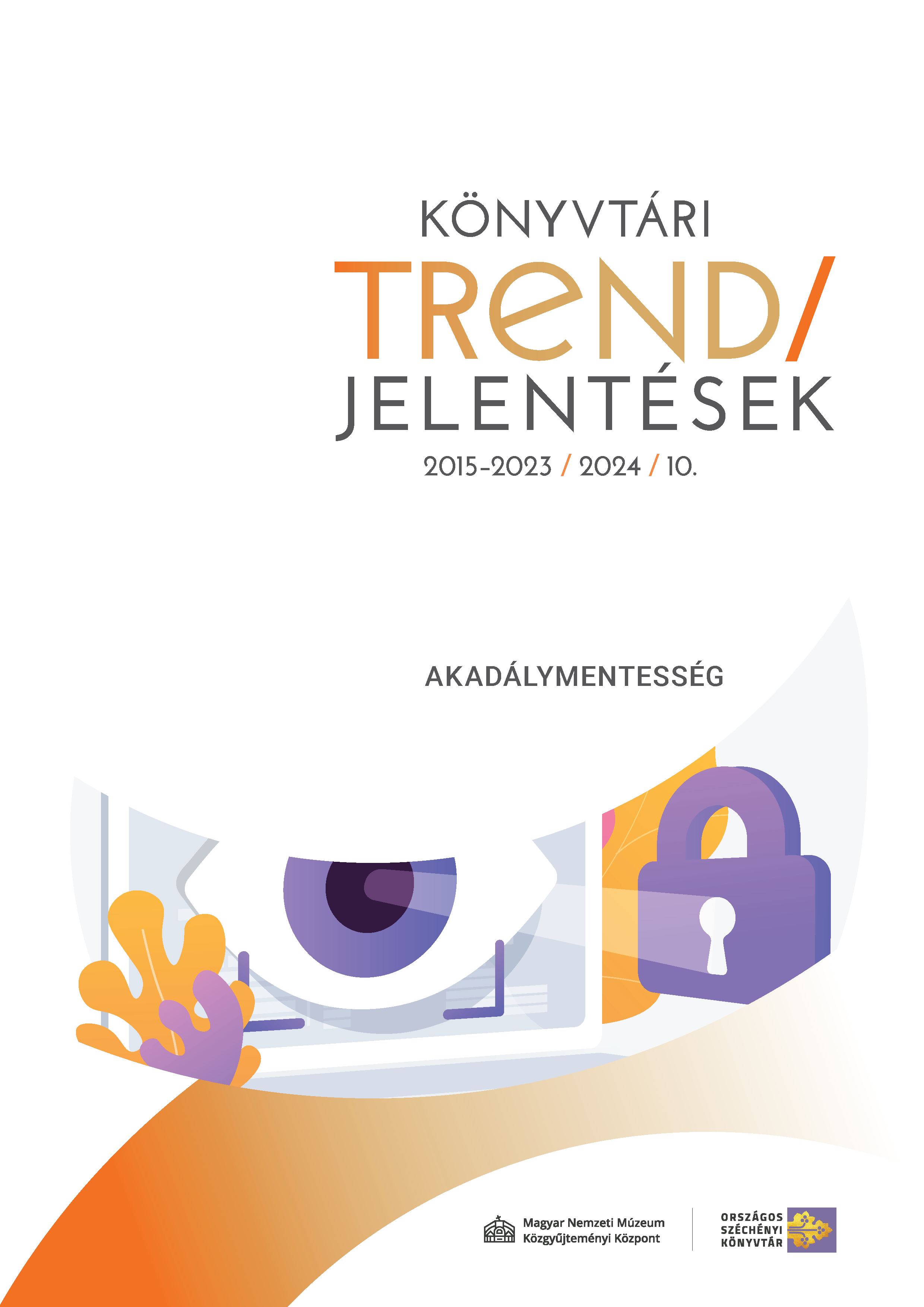 A Könyvtári trendjelentések 10. – Akadálymentesség című kiadványa az országos könyvtári statisztikai (OSAP 1442) adatlapról származó adatok alapján mutatja be a magyarországi könyvtári szolgáltatási pontok fogyatékossággal élő személyek könyvtárhasználatának akadálymentességére vonatkozó főbb jellemzőit 2015-től napjainkig.