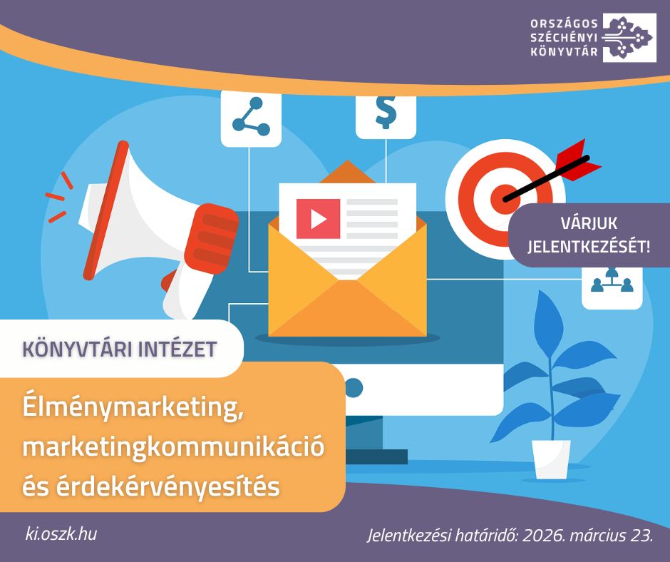 A Magyar Nemzeti Múzeum Közgyűjteményi Központ Országos Széchényi Könyvtár (felnőttképzési nyilvántartási szám: MNMKK B/2022/000258) meghirdeti 30 órás engedélyezett továbbképzési programját Élménymarketing, marketingkommunikáció és érdekérvényesítés (VI/1032-3/2022/KONYVLEV) címmel. A tanfolyamot a tervezett időpontban abban az esetben van lehetőségünk megvalósítani, ha a Kormányzati Képzésszervezési Központ 396/2023. (VIII. 24.) Korm. rendeletben előírt jóváhagyása megérkezik.