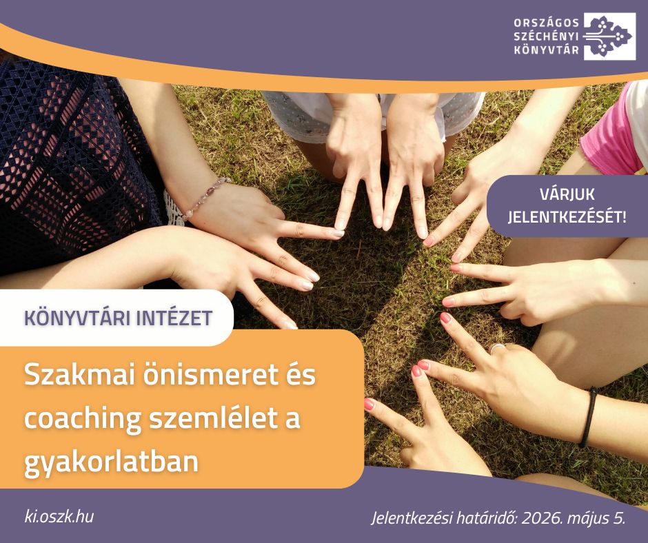 A Magyar Nemzeti Múzeum Közgyűjteményi Központ Országos Széchényi Könyvtár (felnőttképzési nyilvántartási szám: MNMKK B/2022/000258) meghirdeti 45 órás engedélyezett továbbképzési programját Szakmai önismeret és coaching szemlélet a gyakorlatban (KASZB határozatszám: IV/2519-3/2024/KGYFO) címmel.