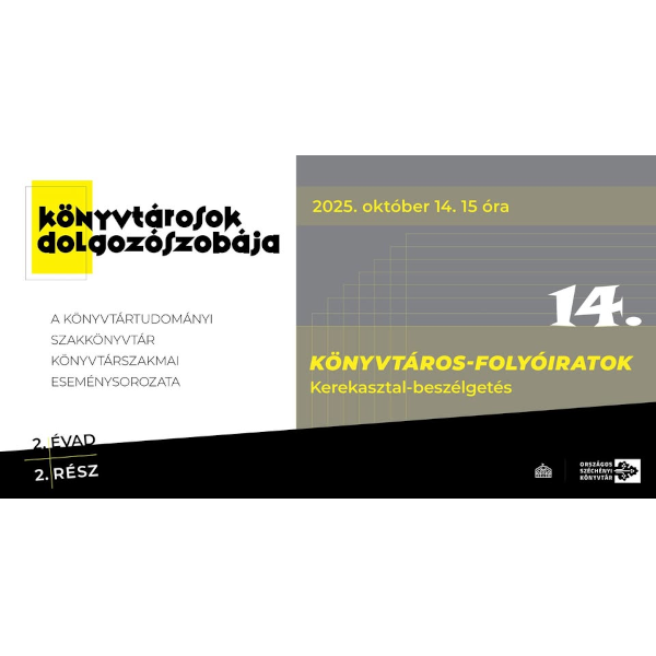 A Könyvtártudományi Szakkönyvtár 2025. október 14-én, kedden 16 órakor rendezte meg a Könyvtárosok dolgozószobája elnevezésű könyvtárszakmai eseménysorozata tizennegyedik rendezvényét Könyvtáros-folyóiratok címmel.